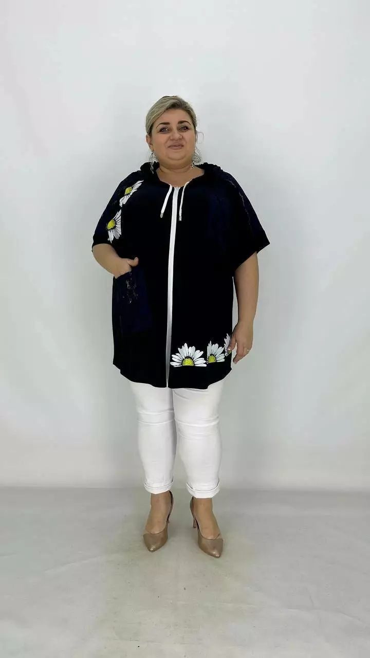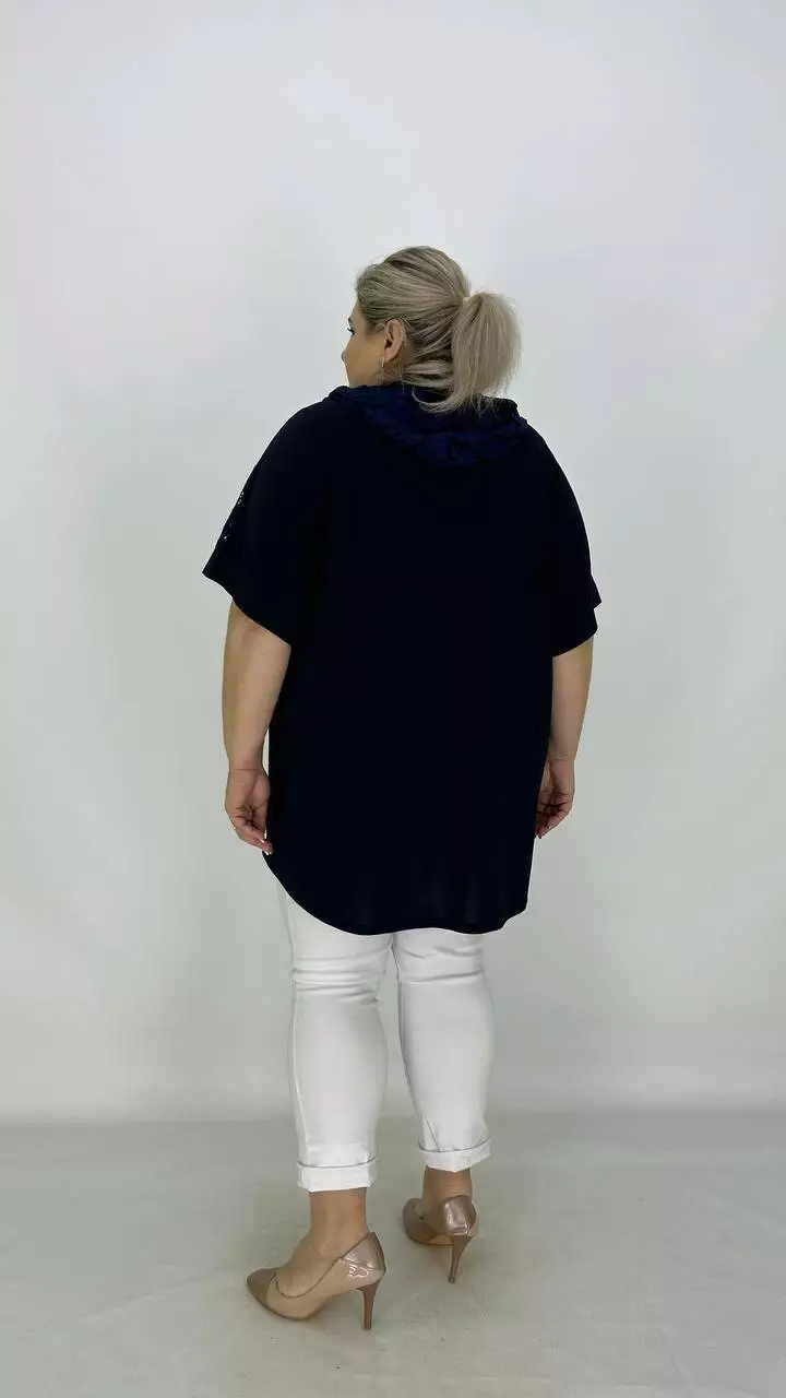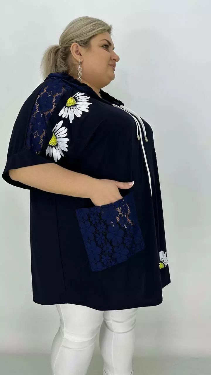 Ошатна кофта з трикотажу-корейська олія комбінована зі стрейчевим гіпюром, не мнеться і хороша розтяжність. Вільний крій, спущене плече, прикрашений якісним накатом. Прати лише у делікатному режимі.