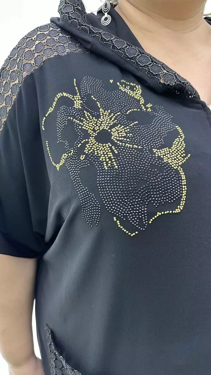 Комбінований з мереживом з люрексовою ниткою або з тканиною люрекс - не обсипається. Прикрашено якісним камінним накатом.