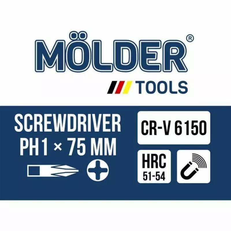 <p>Отвертка крестовая Molder, PH1x75mm (12шт/уп)</p>