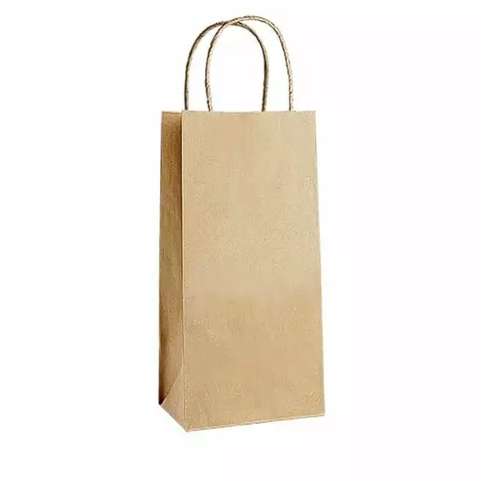 Бурий крафтовий пакет під пляшку 150х360х100 мм з широким дном з