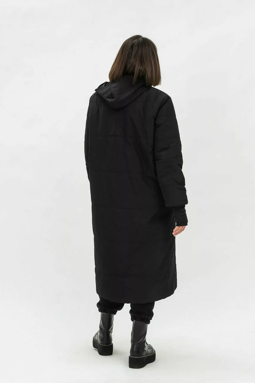 Подовжене пальто жіноче із плащівки з утеплювачем допоможе забути