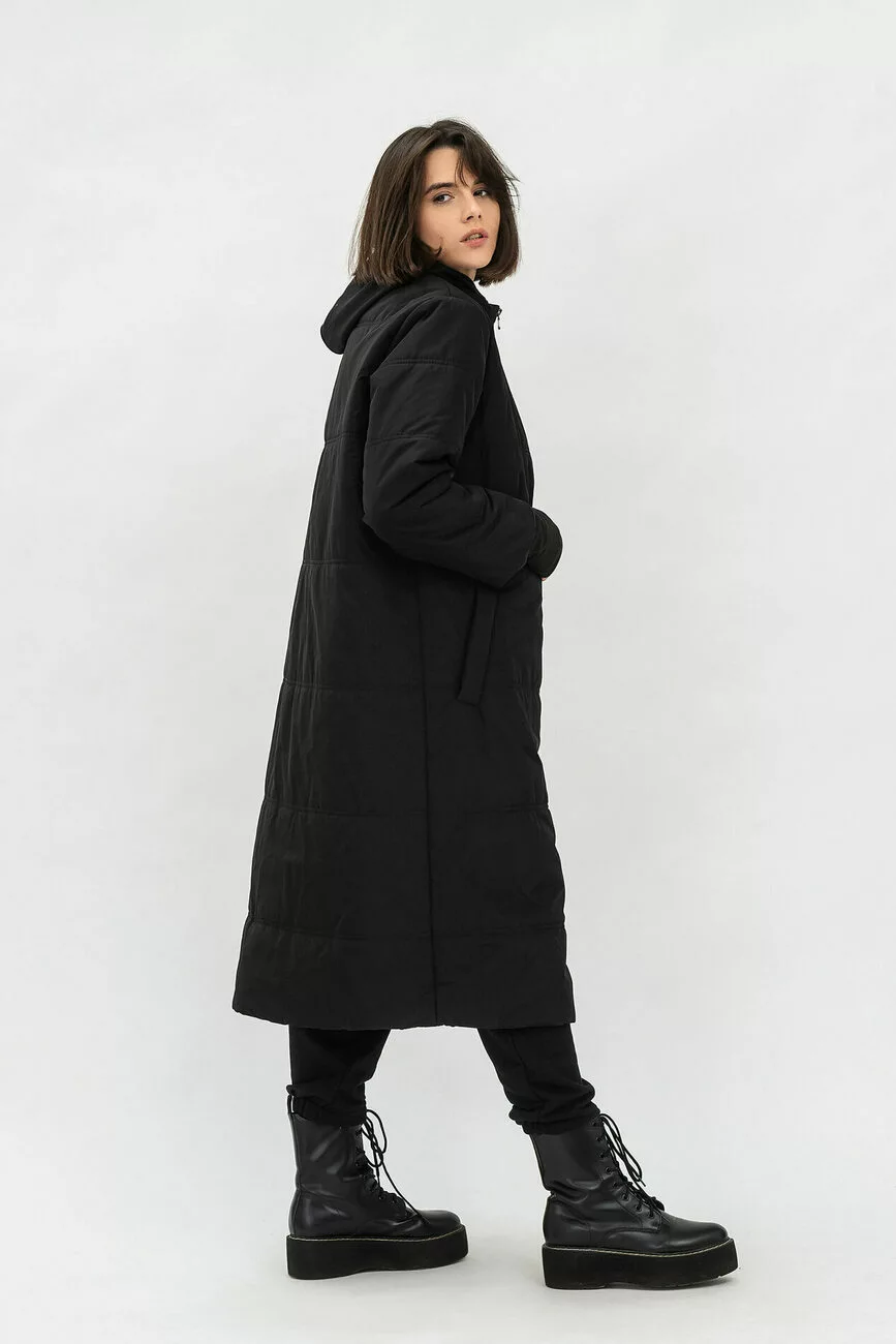 Подовжене пальто жіноче із плащівки з утеплювачем допоможе забути