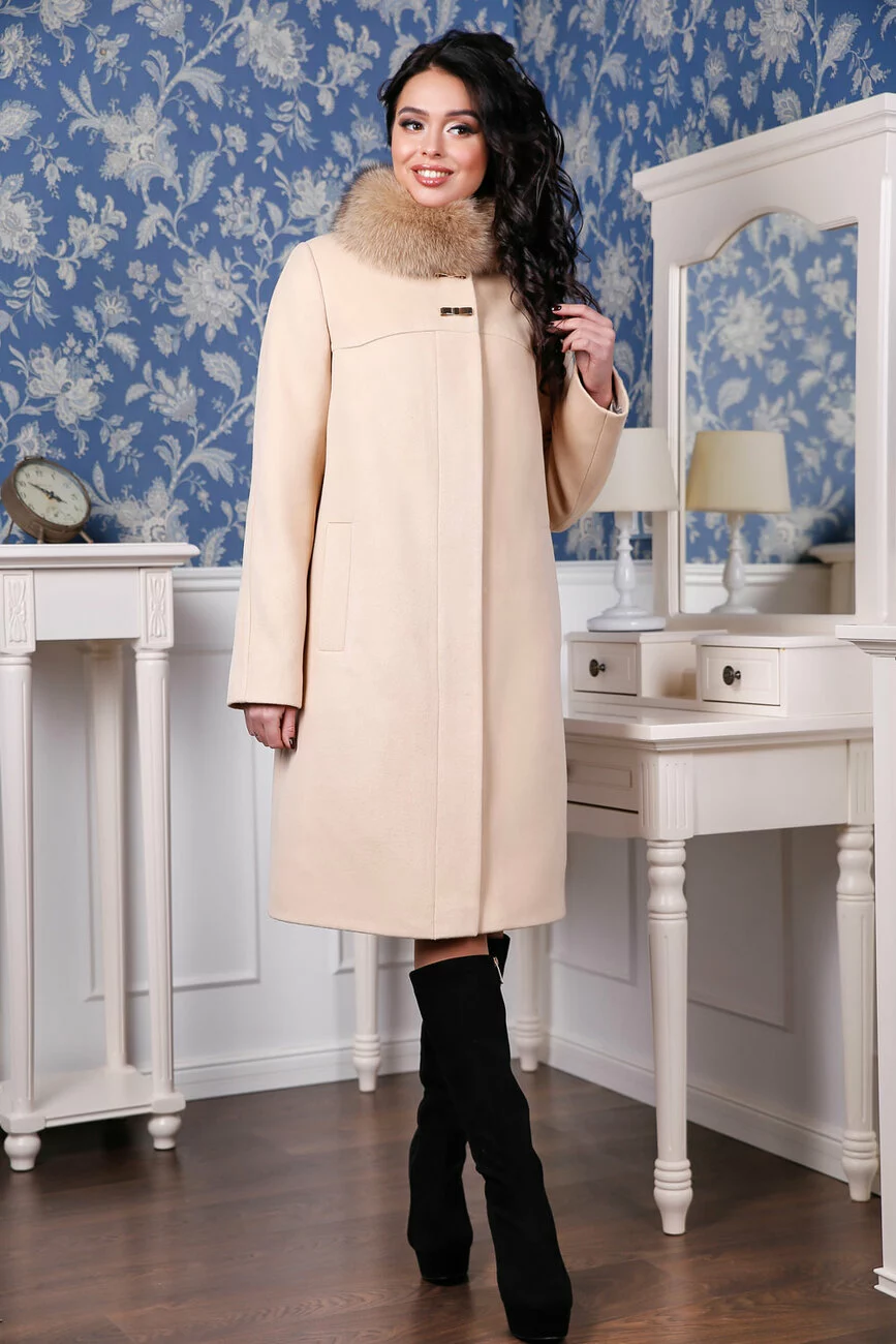 Пальто  женское зимнее, выполненное из пальтовой ткани, прямого силуэта с втачными рукавами. Воротник – стойка.