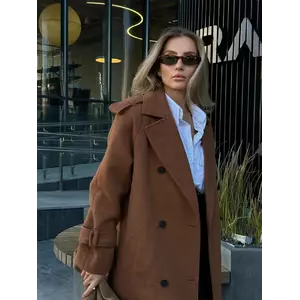 Двобортне оверсайз пальто класичного крою, декороване патами на плечах та рукавах Демісезонне пальто надає трендового об'єму, має 2 діючі кишені та шліцу по спинці внизу Застібається на гудзики, пояс в комплекті