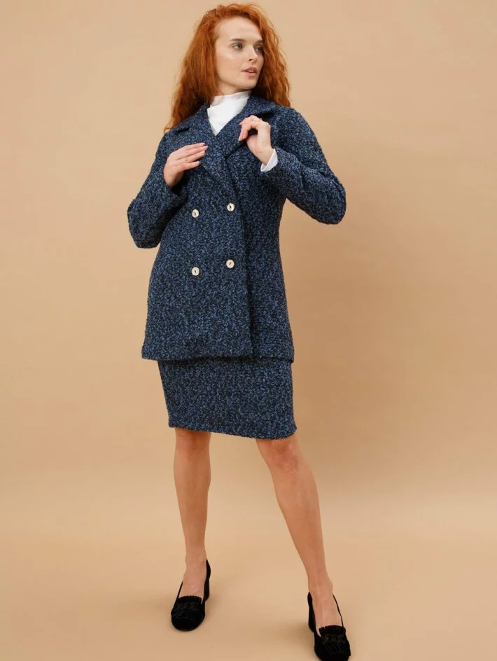 Двобортне пальто - піджак з букльованої вовни з класичним