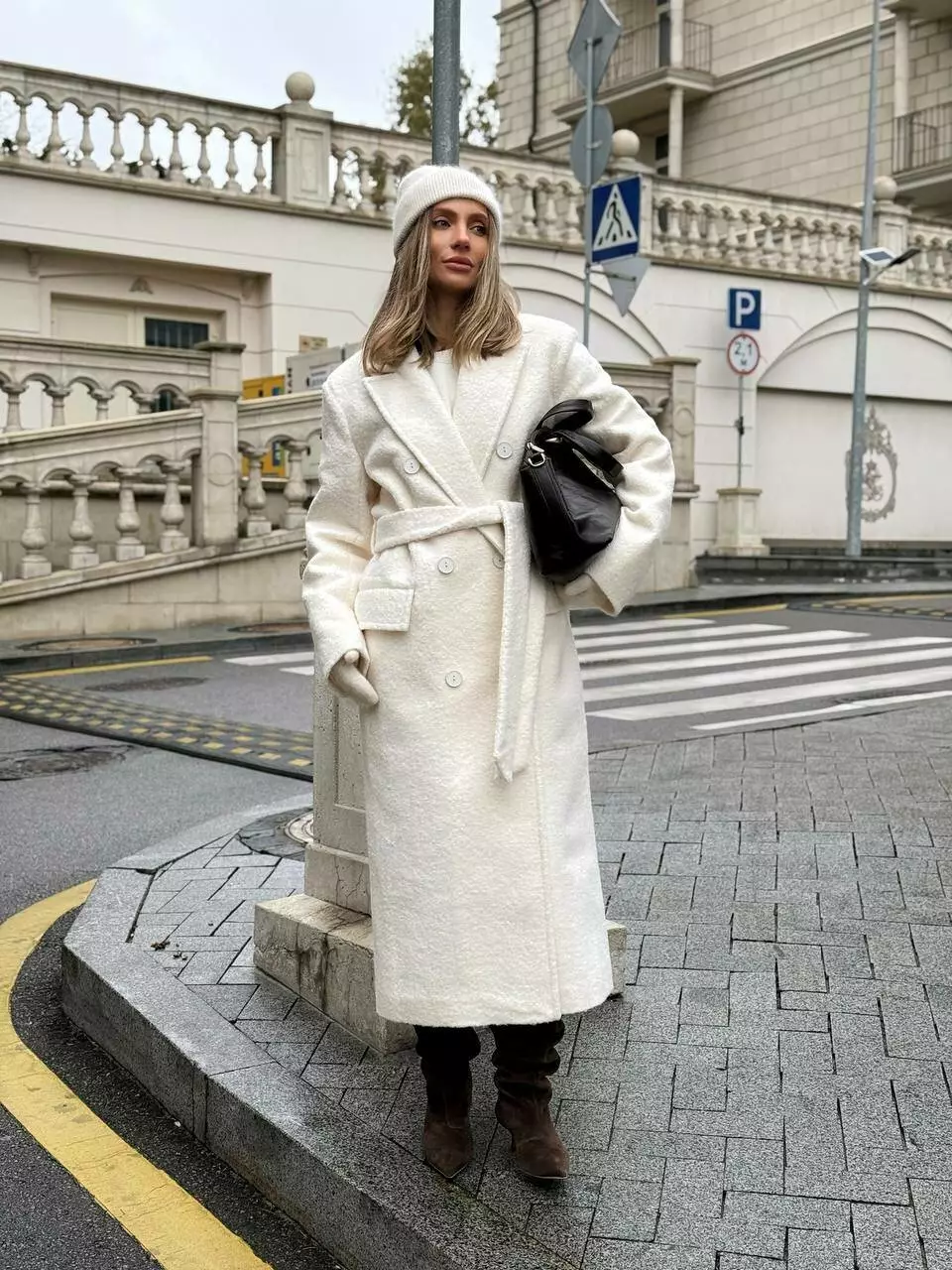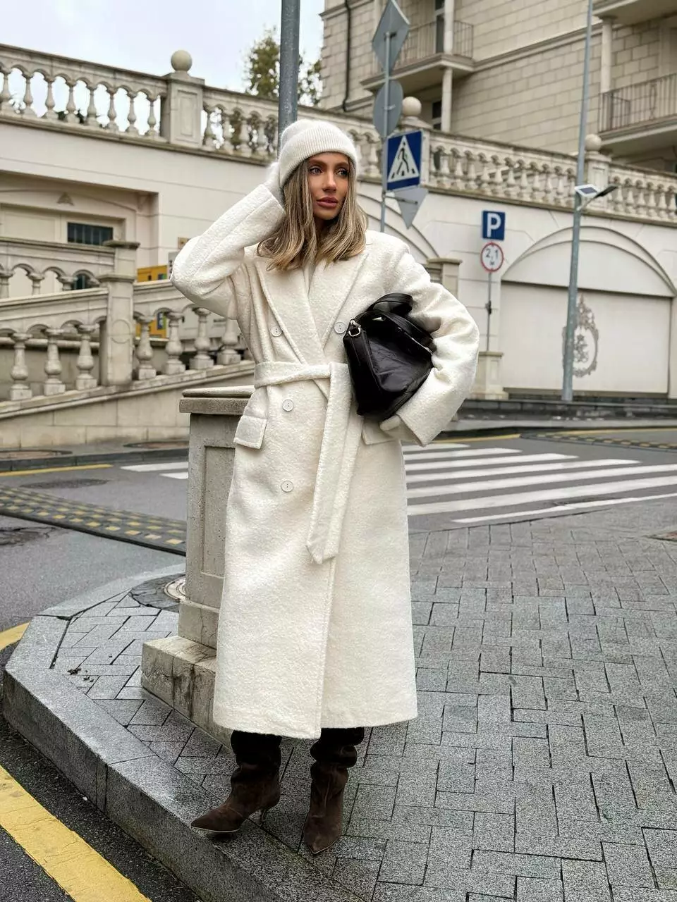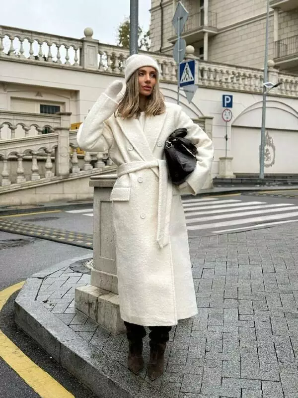 Трендове подовжене двобортне пальто класичного крою з об'ємними плечима Дизайн пальто створений, щоб відчувати себе неймовірно комфортно та впевнено у будь-якій ситуації, 2 діючі кишені та шліца по спинці внизу Застібається на гудзики, пояс в комплекті