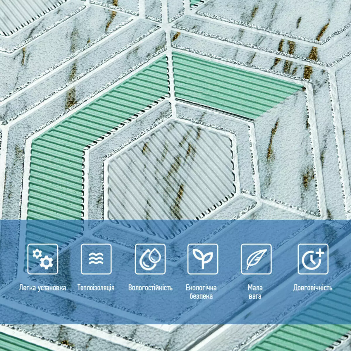 Панель стінова 3D 700х700х4мм Сіро-зелені стільники мармур SW-00002006