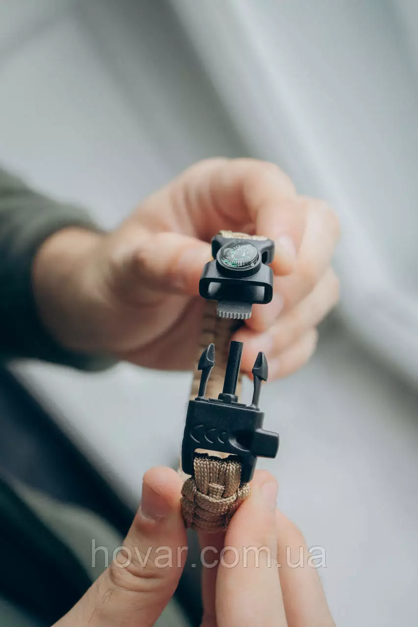 сплетений з паракорду. Має вмонтований компас, щоб ви не заблукали