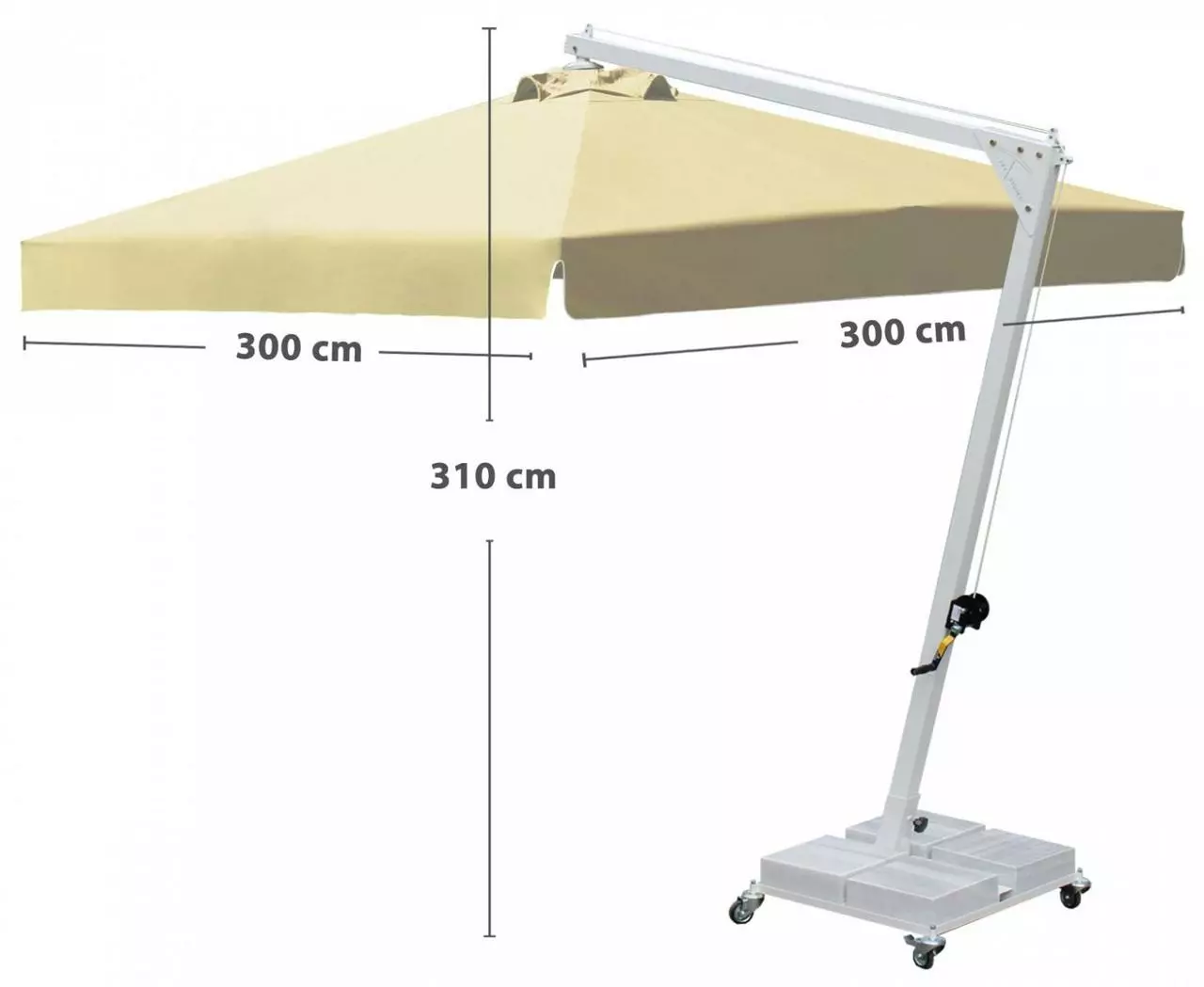 см Щільність тенту: 190 г/м² Механізм відкриття: лебідка ручна Тип: з бічною опорою Розмір опори: 7 х 7 см (товщина 0,25