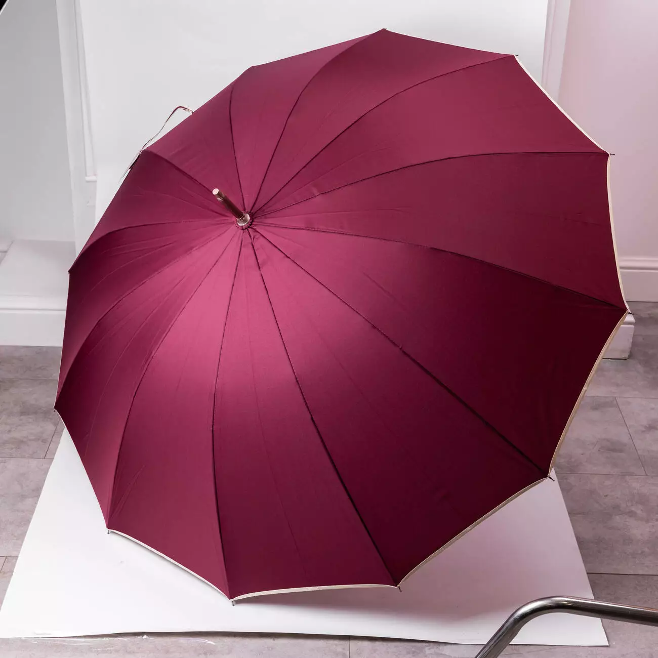 Основою виробу є міцний металевий стрижень, який забезпечує стійкість конструкції. Спиці виконані зі склопластику — матеріалу, що поєднує легкість і гнучкість, завдяки чому купол краще витримує навантаження вітру. Пластикова ручка зручно лежить у руці та має практичну форму для щоденного користування.