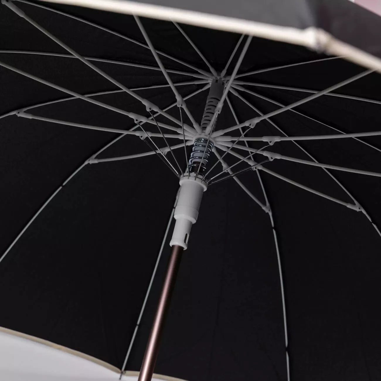 Основою виробу є міцний металевий стрижень, який забезпечує стійкість конструкції. Спиці виконані зі склопластику — матеріалу, що поєднує легкість і гнучкість, завдяки чому купол краще витримує навантаження вітру. Пластикова ручка зручно лежить у руці та має практичну форму для щоденного користування.