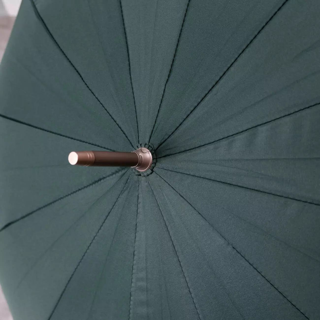 Основою виробу є міцний металевий стрижень, який забезпечує стійкість конструкції. Спиці виконані зі склопластику — матеріалу, що поєднує легкість і гнучкість, завдяки чому купол краще витримує навантаження вітру. Пластикова ручка зручно лежить у руці та має практичну форму для щоденного користування.