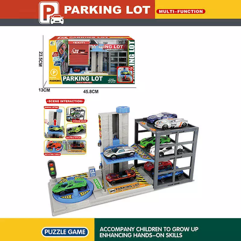 Парковка G 714 (24/2) багаторівнева, механічний ліфт, механічний оберт платформи, 3 металопластикові машини, довжина: 7 см, аксесуари, в коробці
