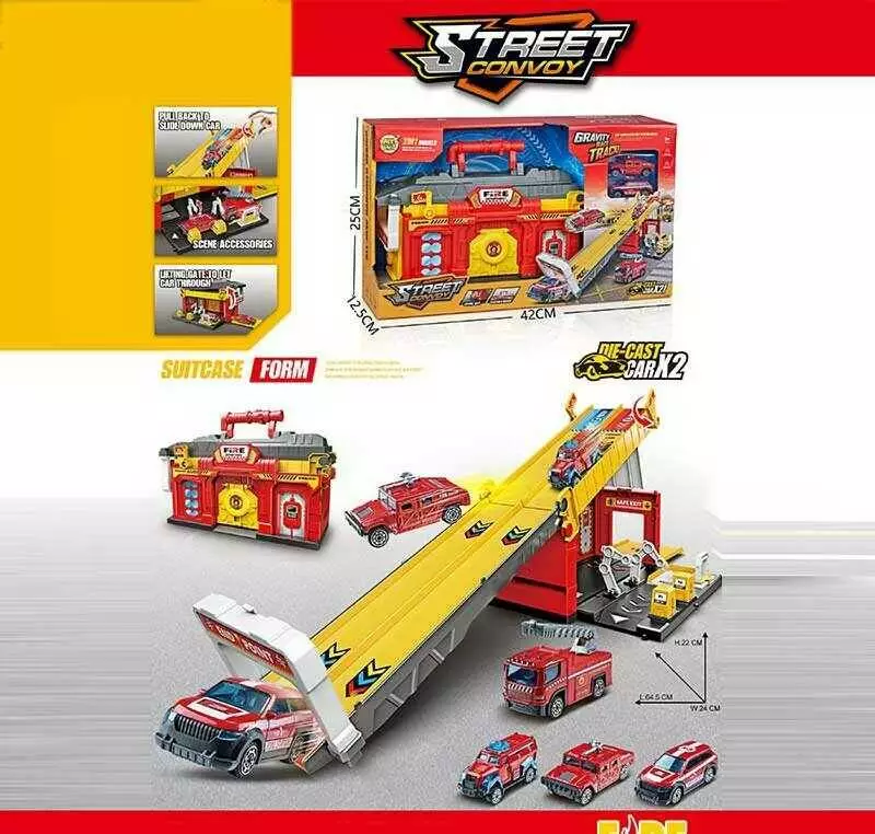 Трек MH 192 (18) запускач, 2 металопластикові машинки, наліпки, в коробці