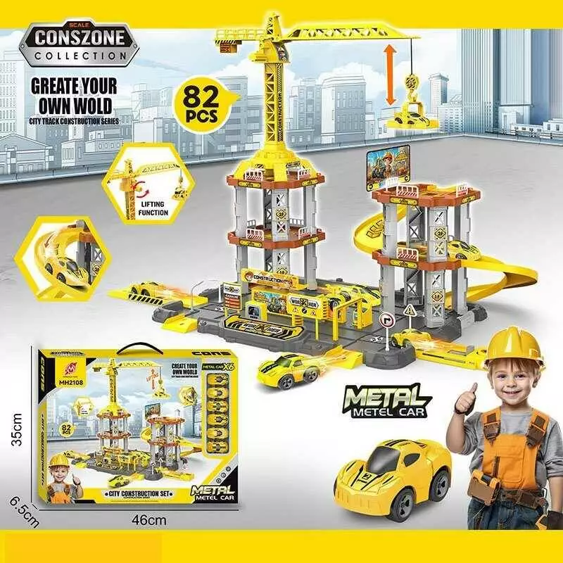 Трек MH 2108 (24) 82 елементи, 6 машинок, підіймальний кран, в коробці
