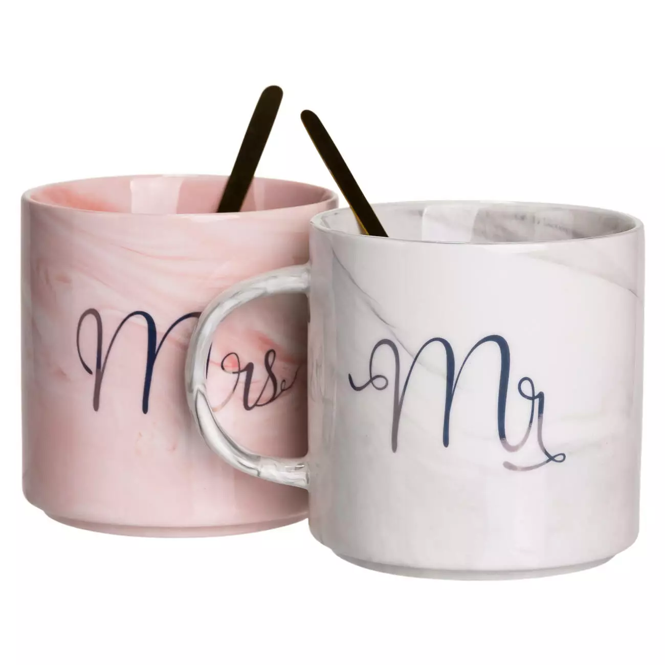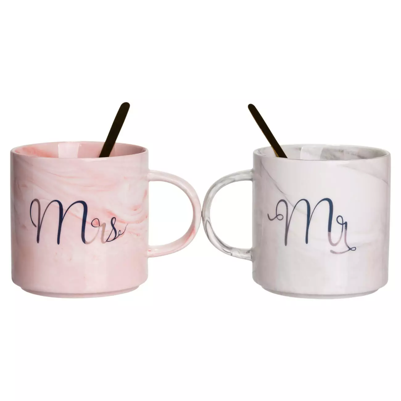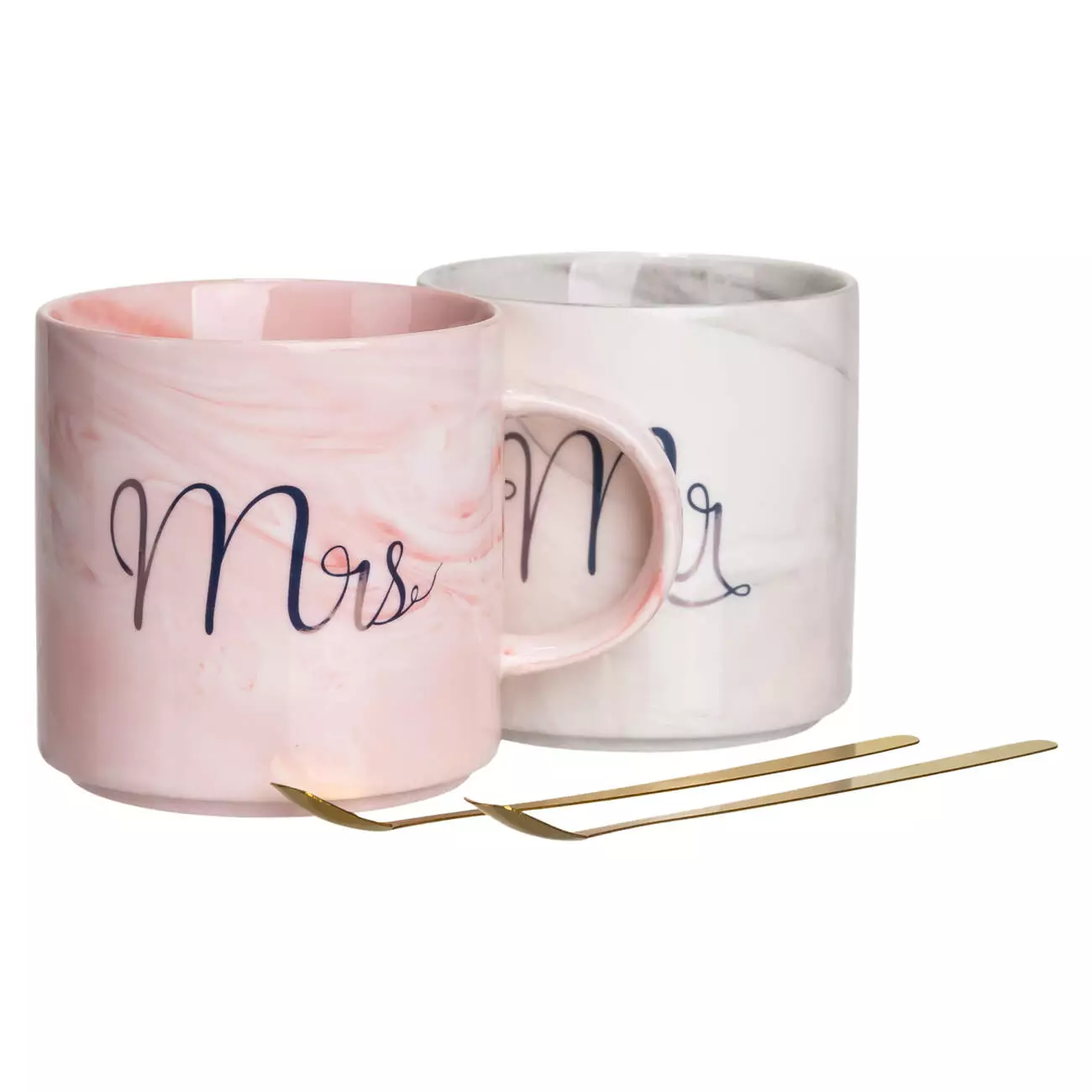 Парні чашки порцелянові Mr&Mrs 400 мл з ложками