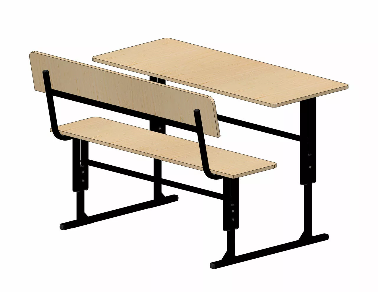 Регулируемая монолитная парта для двоих, размер (1200*930*h).