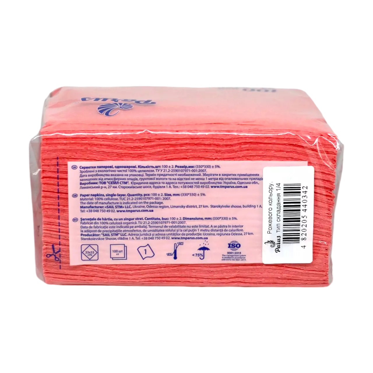 Паперові серветки Parus кольорові рожеві розміром 33*33 см, з одним