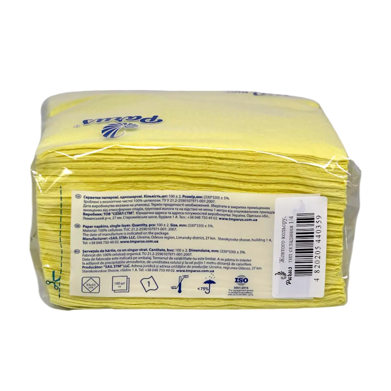 Паперові серветки Parus кольорові жовті розміром 33*33 см, з одним