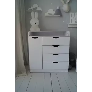 Розміри пеленального комода: 90*43*95 см, висота до пеленатора – 90 см. Розмір пеленальної поверхні: 81*73 см.