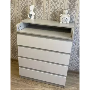 Розміри пеленального комода: 102*80*43 см, висота до пеленатора – 90 см. Розмір пеленатора: 73*71 см. Розмір шухляд: 71*37*12 см.