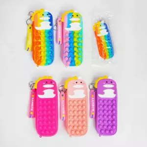 Діти обожнюють предмети та аксесуари, які підкреслюватимуть їхню індивідуальність та відрізнятимуть від однолітків, водночас будуть модними та сучасними. Оригінальний пенал у формі єдинорога має цікаву поверхню “поп-іт”, яка розважить малечу та стане стильним аксесуаром, який дитина зможе використовувати у якості сумочки, пенала або брелка для рюкзака. Особливості: - оригінальний дизайн у формі єдинорога; - розмір: 20х7х3 см; - пупирчата поверхня; - 1 відділення на блискавці; - силіконова ручка-тримач та металевий карабін.
