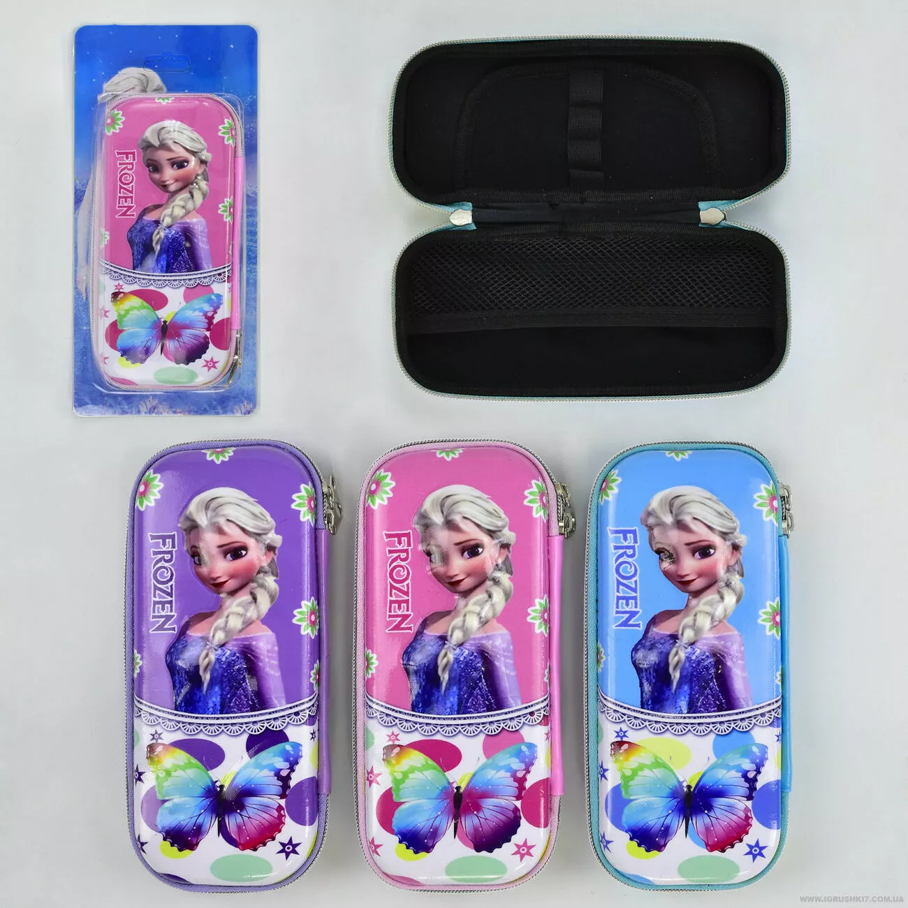 Пенал С 29823 виконаний з міцного матеріалу блакитного або чорного кольору з з 3D зображенням Ельзи, головної героїні мультфільму "Холодне серце". Пенал складається з одного місткого відділення, яке в свою чергу ділиться на кілька зон. В одному боці встановлена зона з гумками для фіксації письмового приладдя, в інший карман. Пенал на блискавці. Пенал представлений в фіолетовому, рожевому і блакитному кольорі.