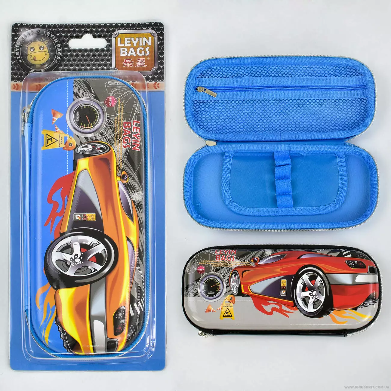 Пенал С 29833 виконаний з міцного матеріалу блакитного або чорного кольору з з 3D зображенням спортивної машини. Пенал складається з одного місткого відділення, яке в свою чергу ділиться на кілька зон. В одному боці встановлена зона з гумками для фіксації письмового приладдя, в інший карман на блискавці.