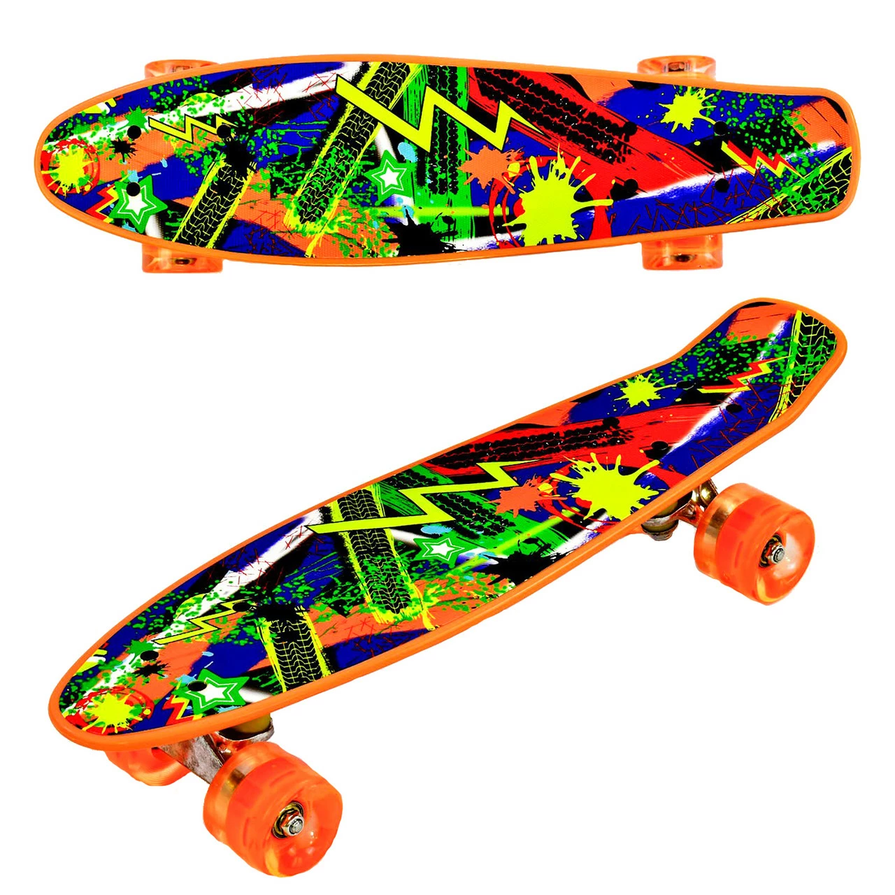 ярким рисунком. Колеса скейта выполнены из полиуретана, что делает