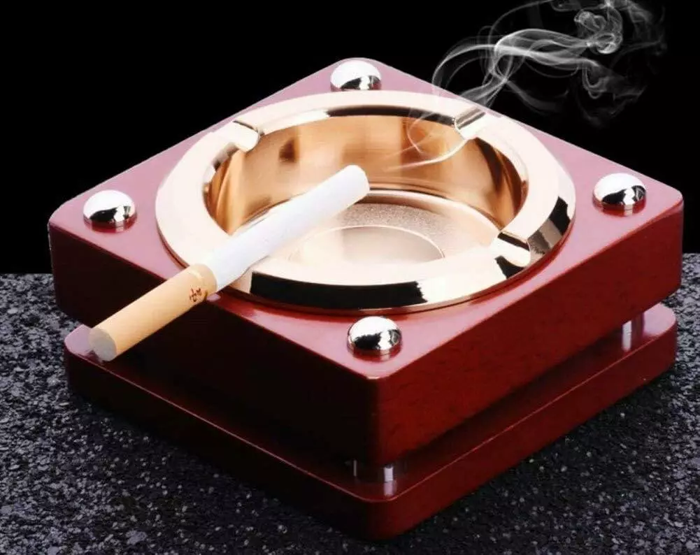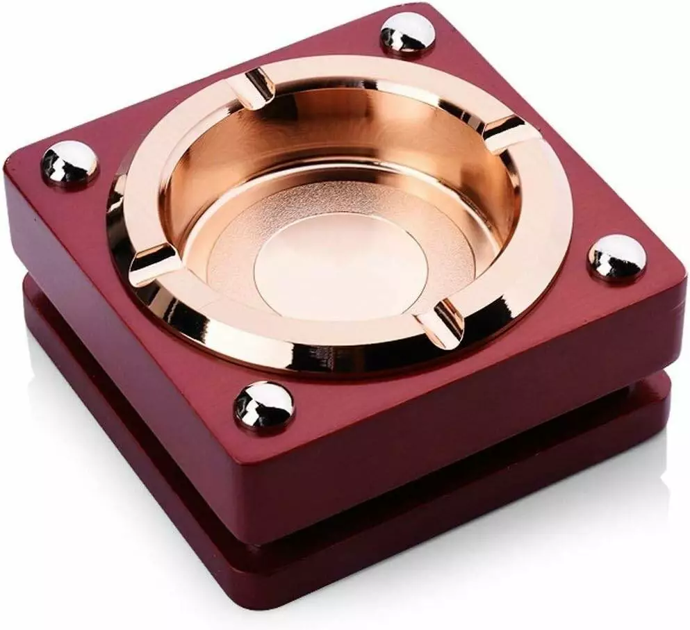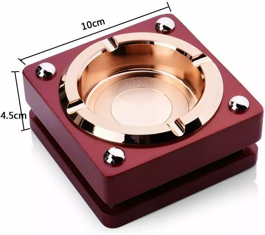 Эта стильная пепельница идеально подойдёт как для дома, так и для офиса или бара. Выполнена из прочных и долговечных материалов, легко очищается. Углублённая металлическая чаша с выемками для сигар или сигарет удобно размещает табачные изделия и предотвращает выпадение пепла.