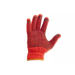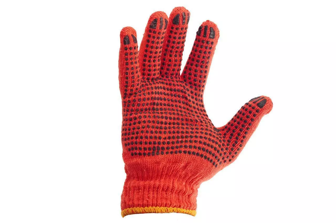 Перчатки рабочие оранжевые в точку , в упаковке 12 пар в мешке 600 пар