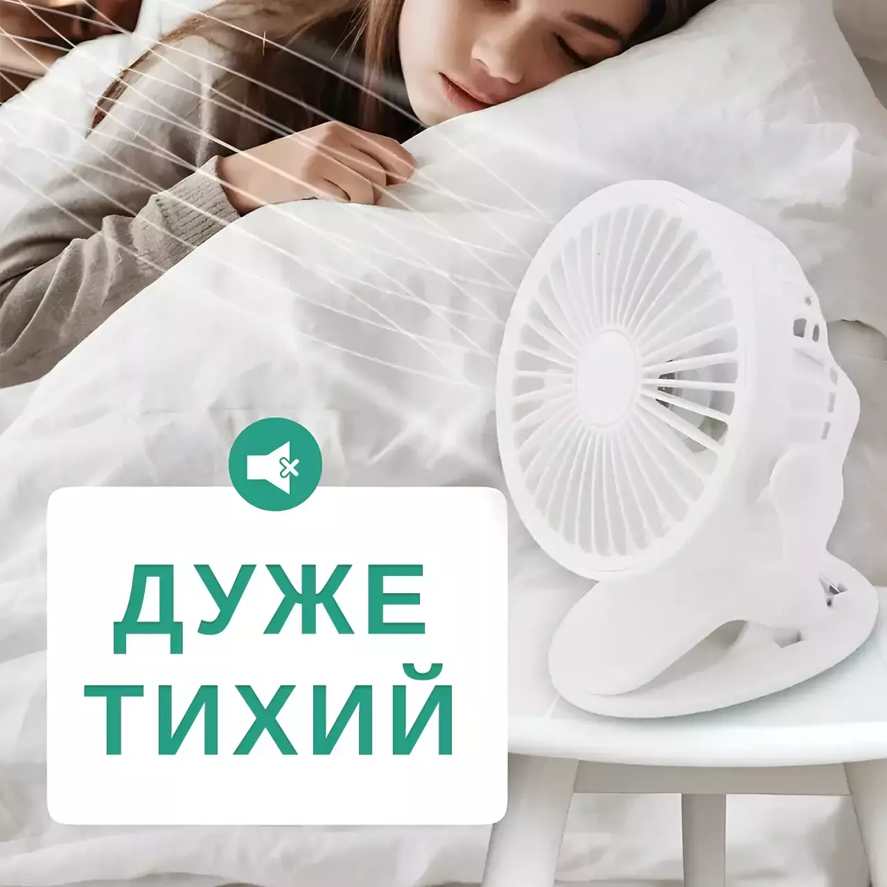 2. Удобное крепление-прищепка: Уникальная конструкция прищепки позволяет крепить вентилятор к любой поверхности — край стола, полки и т.д. Это обеспечивает максимальную гибкость и удобство в использовании.