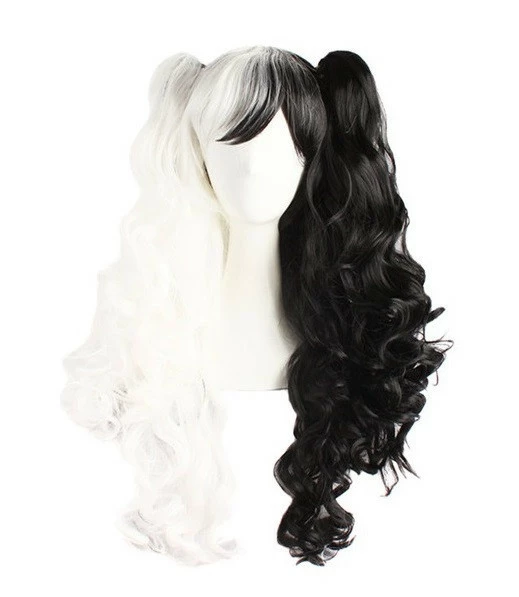 Перуки з хвостиками RESTEQ, 65см. Чорно-білі хвилясті волосся, косплей, аніме