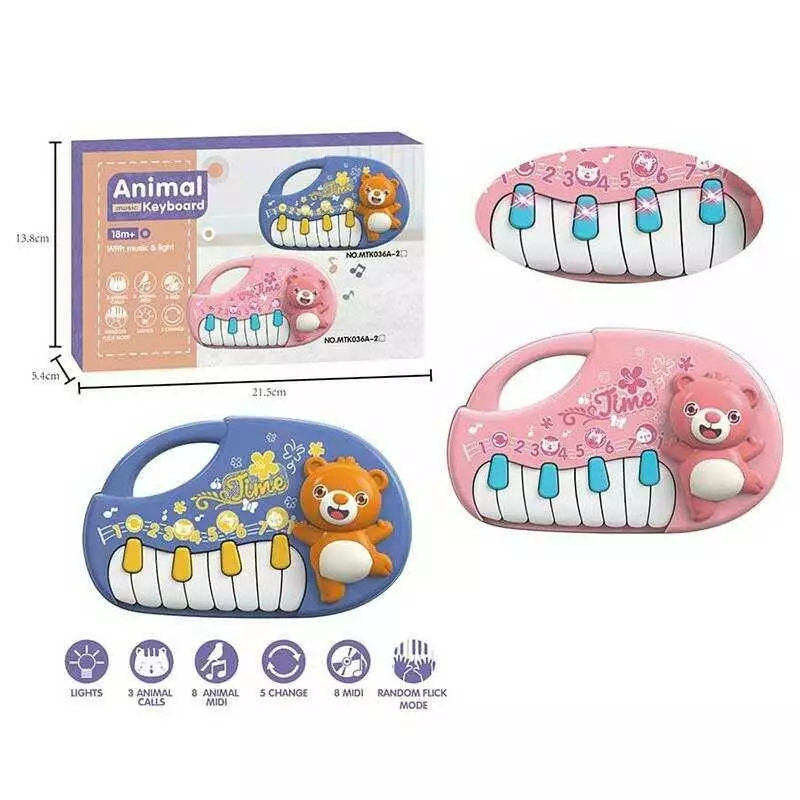 Піаніно MTK 036 A-2 (144/2) 2 кольори, на батарейках, звуки тварин, підсвічування, режими, звук, в коробці