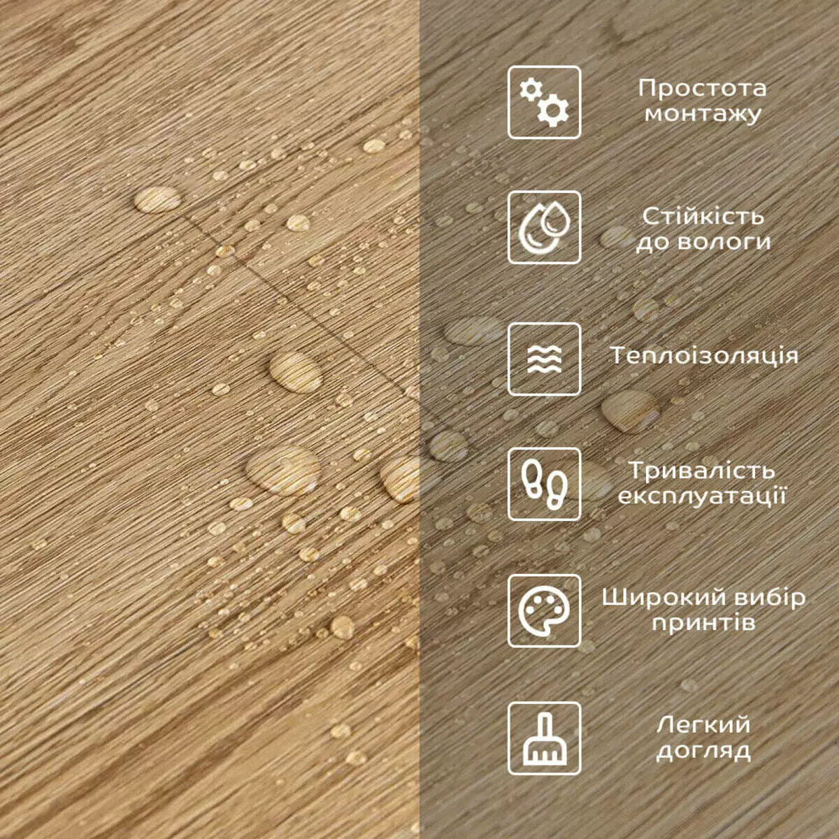 - Легкий монтаж: клейовий шар робить процес укладання швидким і