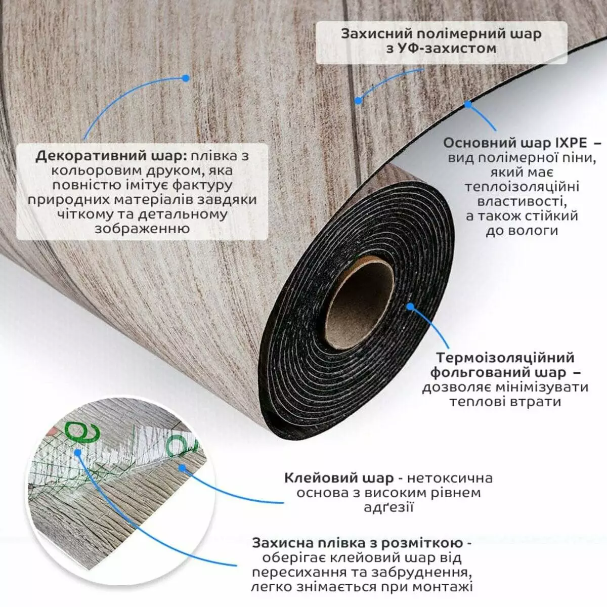 4. Термоізоляційний фольгований шар: основна властивість цього шару – відображення теплових хвиль, що дозволяє мінімізувати теплові втрати, тим самим покращити теплоізоляцію приміщення.