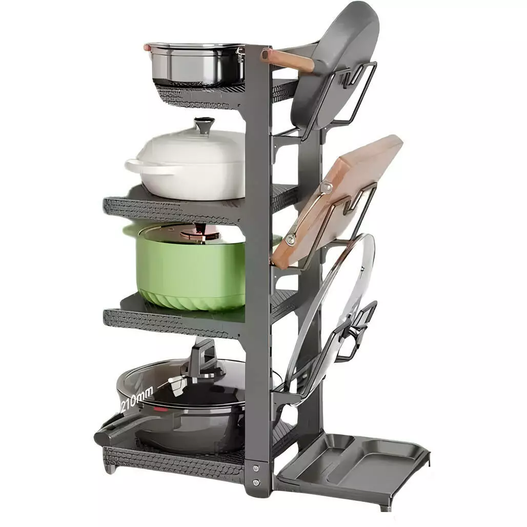 Кухонна полиця на 4 рівні з додатковими утримувачами для кришок -