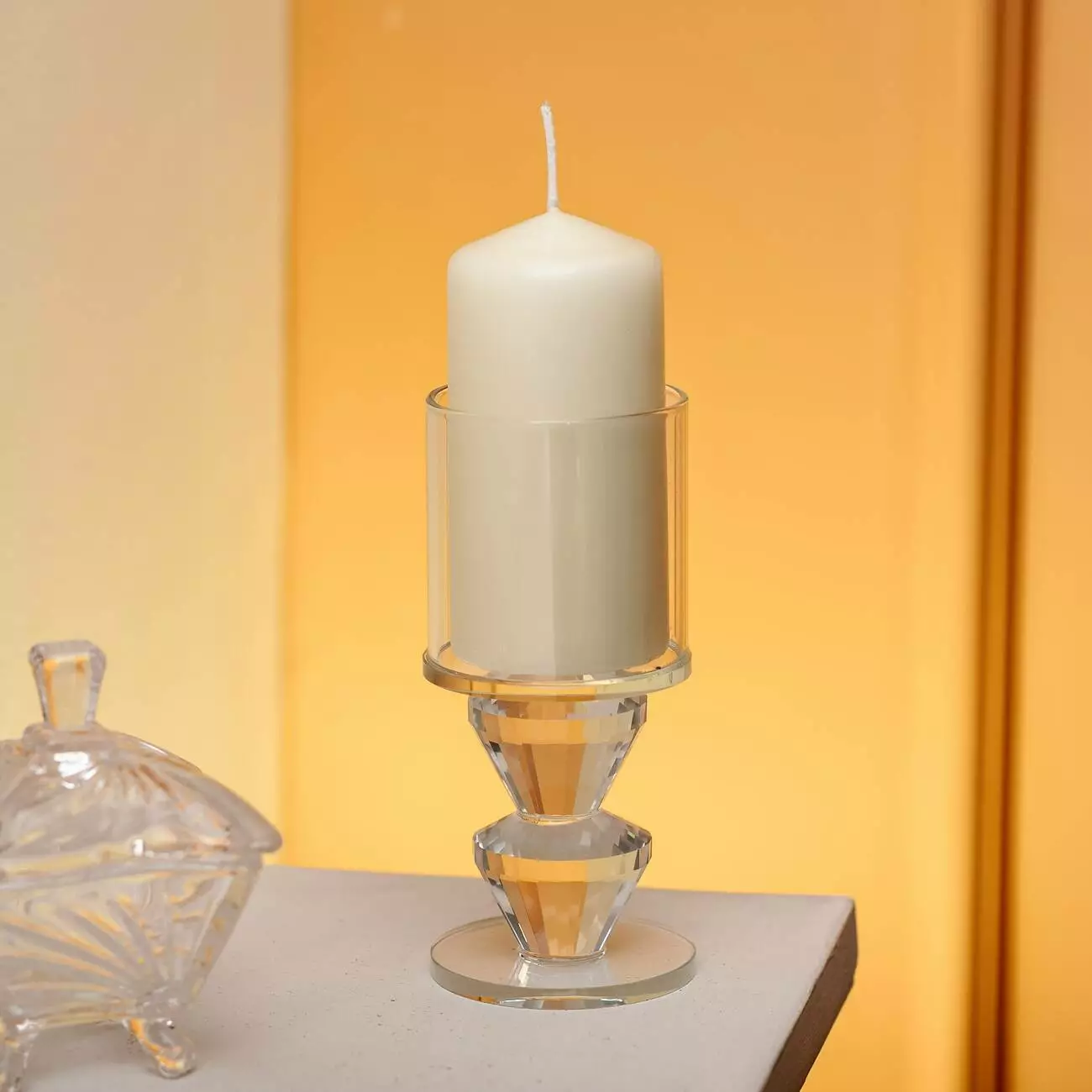 Висота підсвічника становить 13.3 см, діаметр — 6 см, а посадкове місце під свічку розраховане на діаметр до 5.5 см. Завдяки своїй вазі 300 г, виріб є достатньо стійким, що дозволяє безпечно розміщувати його на будь-яких поверхнях. Підходить для використання з декоративними або ароматичними свічками.