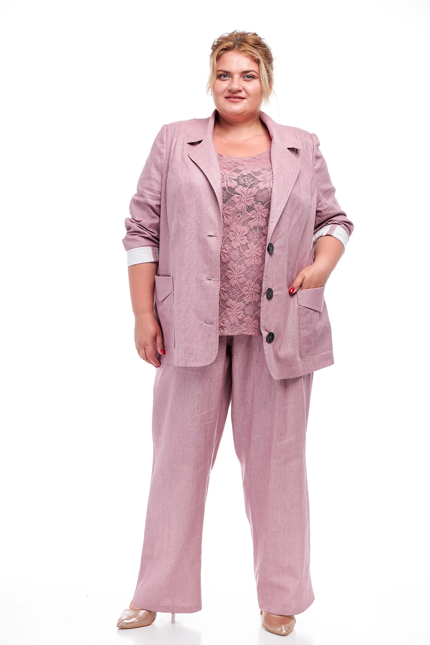 Тканина – сумішовий льон -75% льон; 25% віскоза. Стильний, яскравий. Літній жакет вільного силуету з дихаючої, легкої тканини. Рукав довгий виріб має три великі, красиві гудзики і дві накладні кишені.