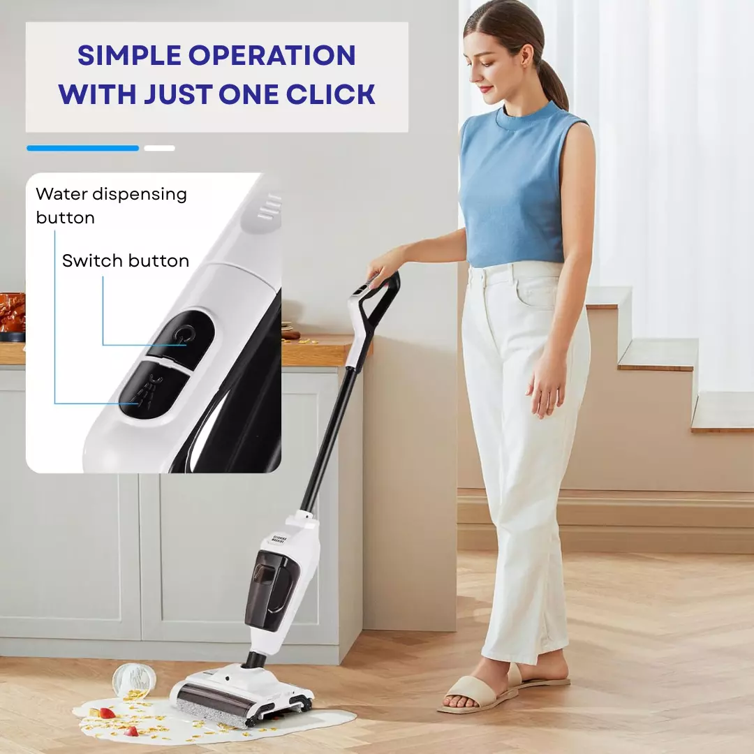Керування одним натисканням кнопки: Легко мийте підлогу водою одним натисканням кнопки. Ви також можете контролювати, наскільки сухим або вологим має бути швабра, щоб вона відповідала потребам вашого дому.