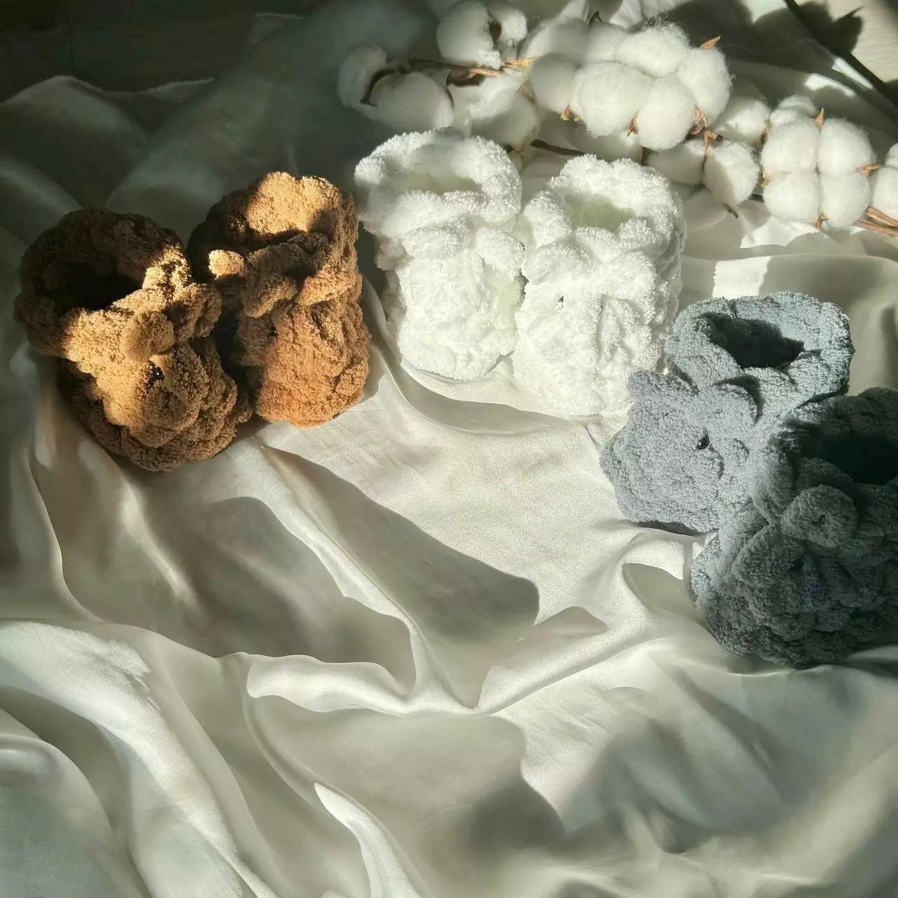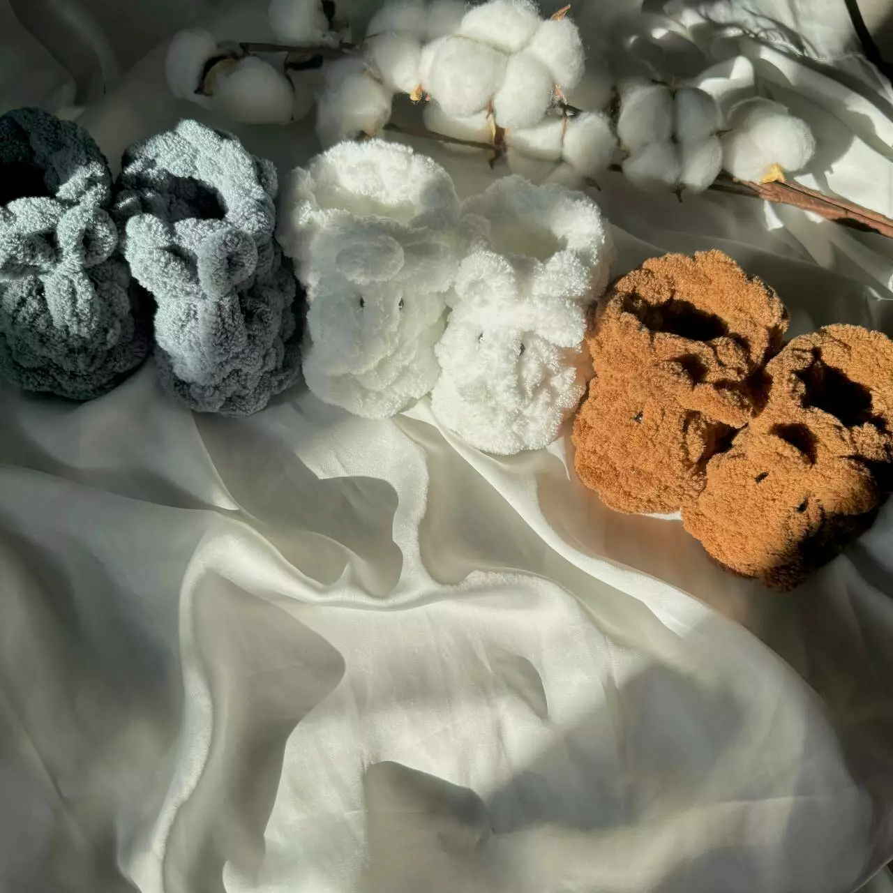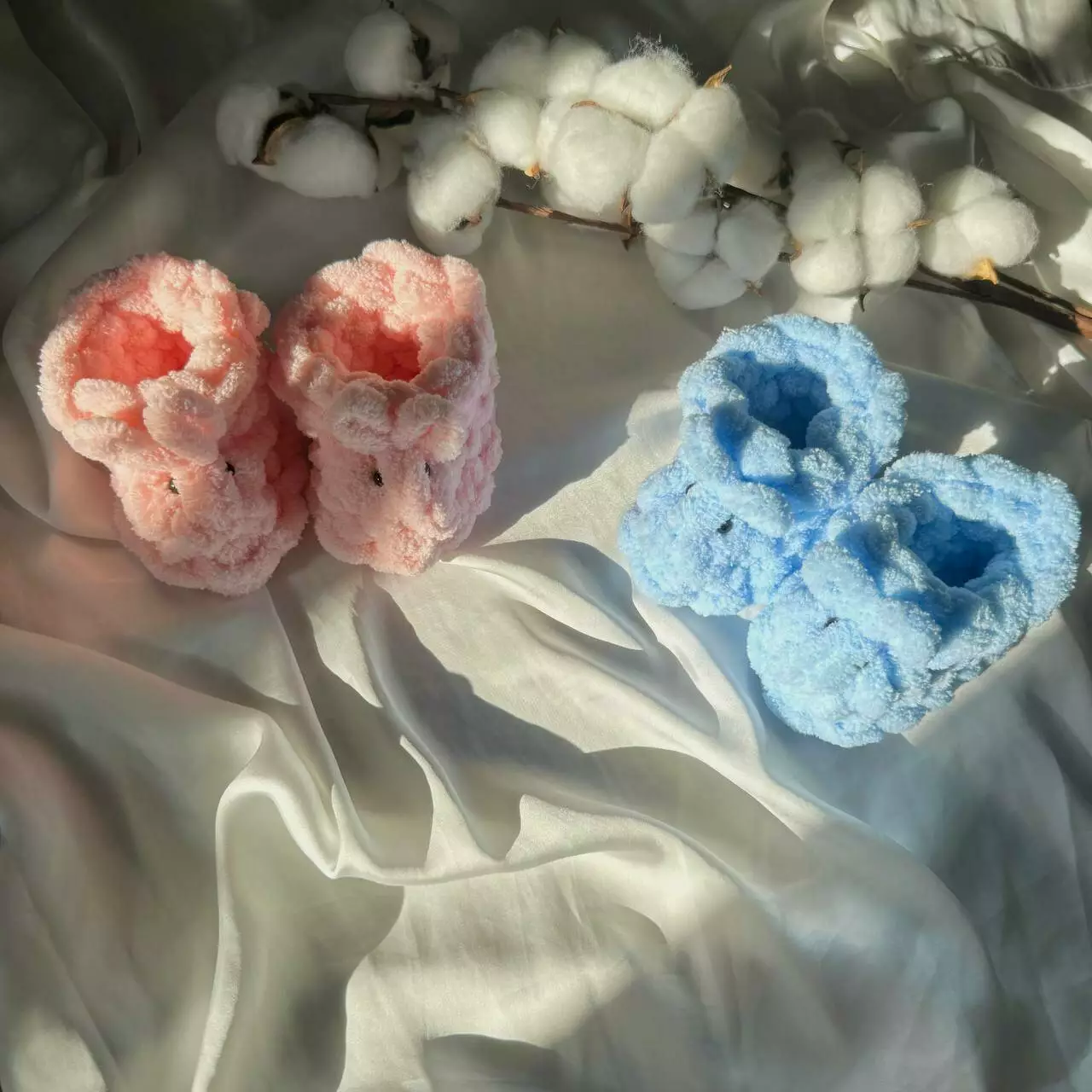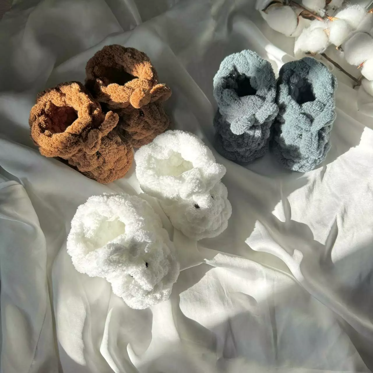Связаны вручную из пряжи Alize Puffy, которая известна своей