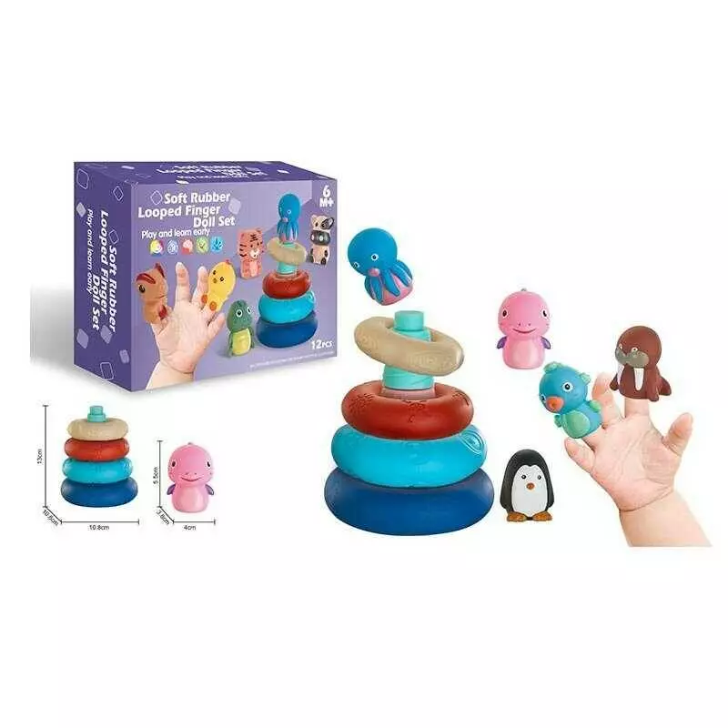 Пірамідка 1271 (48) розбірна, 4 кільця, 5 фігурок тварин, в коробці