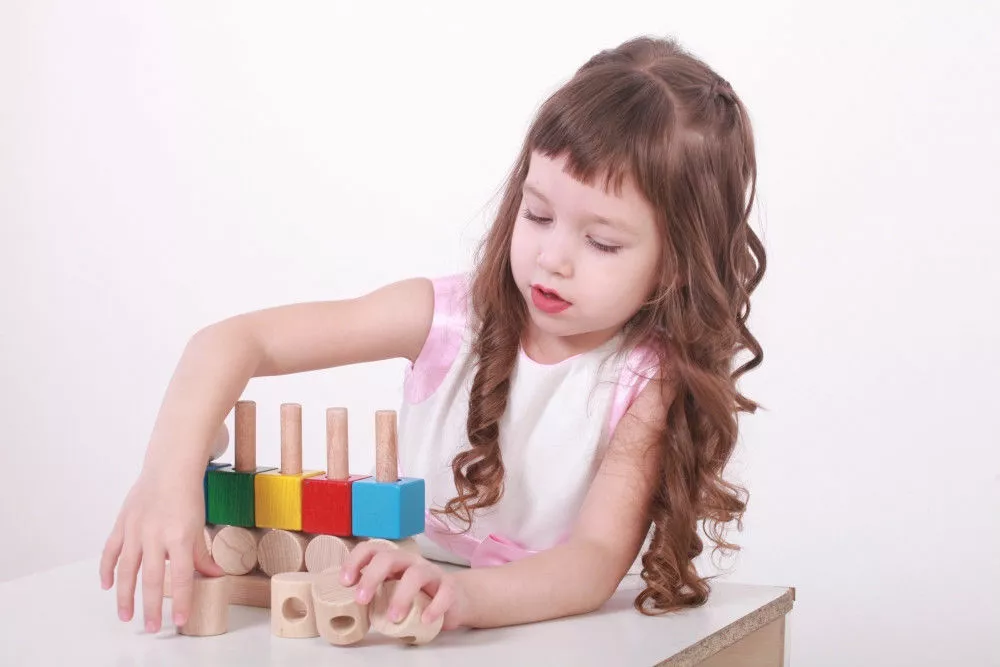 пяти штырьках нанизаны круглые и квадратные фигурки. Они удобного