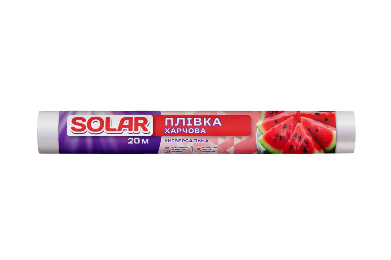 Пищевая пленка SOLAR, 20 м — практичное решение для сохранения свежести продуктов в холодильнике или на кухне. Защищает еду от внешних воздействий, запахов и пересыхания. Благодаря эластичности плотно прилегает к посуде и продуктам. Пленка легко разматывается и удобно рвется вручную.