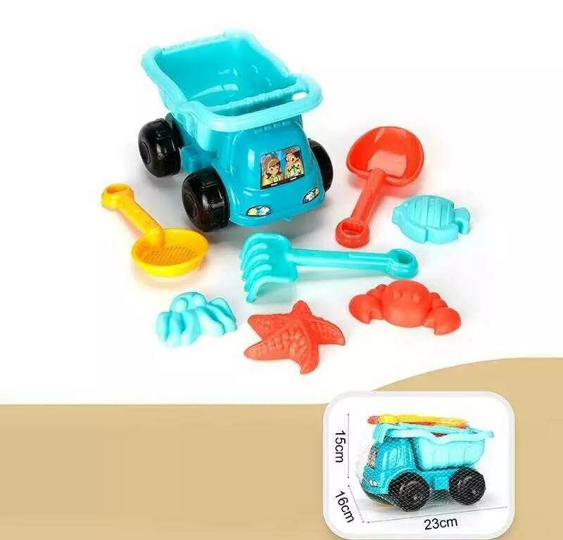 Пісочний набір YF 3634 (48) машина - самоскид, лопатка, граблі, сито, 4 формочки, в сітці