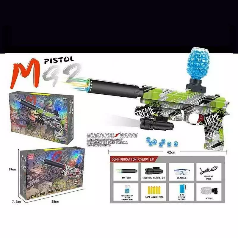 Home > Catalog > Toys > Toy weapons > Пістолет G 920-4 D (36) стріляє орбізами та м`якими патронами, автоматичний принцип, акумулятор 3.7 V, окуляри, USB-кабель, в коробці wholesale