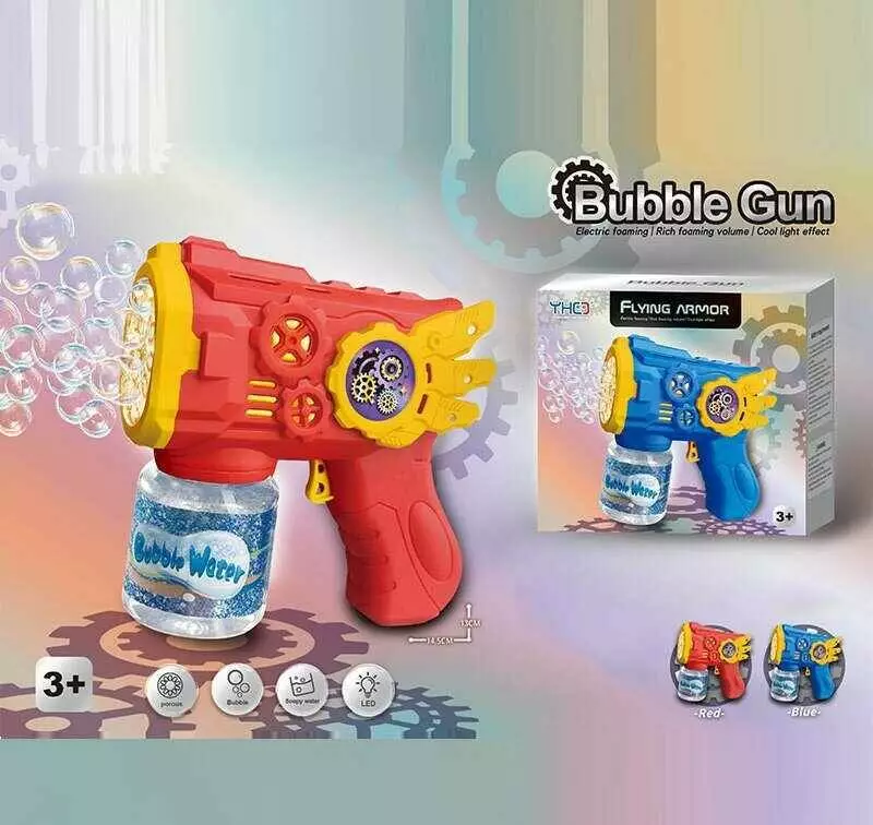Пістолет з мильними бульбашками 333-33 (96/2) 2 кольори, автоматичний принцип, мильний розчин, на батарейках, підсвічування, в коробці