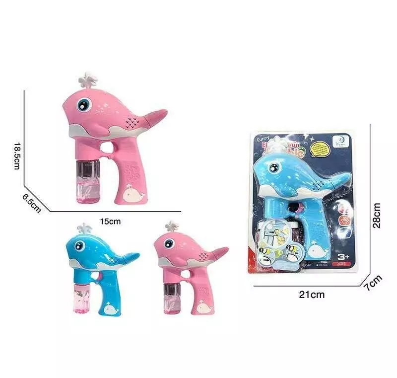 Пістолет з мильними бульбашками 6265 (48/2) 2 кольори, "Кит", на батарейках, музика, підсвічування, 2 пляшки мильного розчину, автоматичний принцип, н