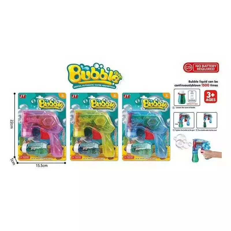 Home > Catalog > Toys > Bubble blower > Пістолет з мильними бульбашками JT 6907 (120/2) 3 кольори, підсвічування, механічний принцип роботи, пляшка з мильним розчином, на листі, ВИДАЄТЬСЯ ТІ wholesale