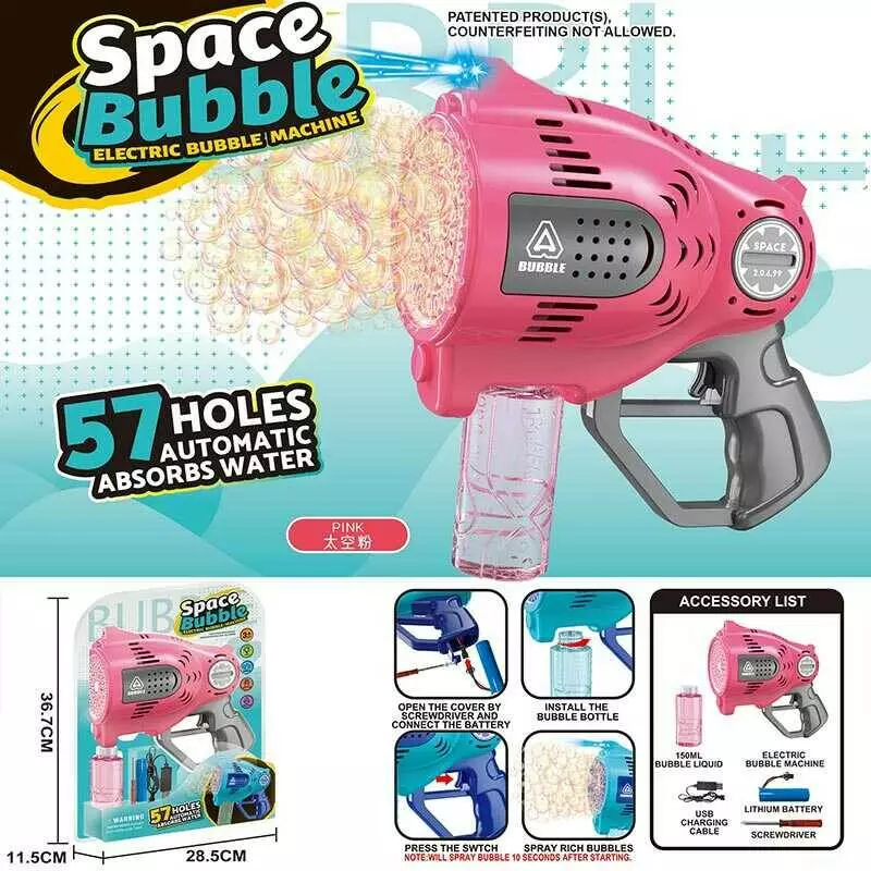 Пістолет з мильними бульбашками KB 1302 Штрих = 91412 (24) акумулятор 3.7 V, підсвітка, мильний розчин, USB кабель, тарілочка, в коробці